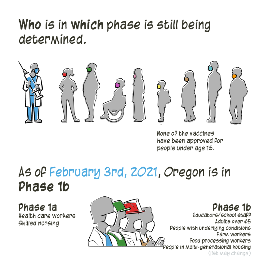 The information in this comic is drawn from OPB’s COVID-19 reporting. In particular: