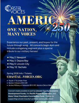 Seniors, Active Military and Veterans receive a $10 discount, youth 17 and under get in free. Service decor welcome. This concert is made possible in part by the Siletz Tribal Charitable Contribution Fund, Lincoln County Economic Development Funds and the Pacific Power Foundation. Please visit coastal-voices.org for more information.