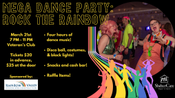 Are you searching for the pot of gold at the end of the rainbow? Join us St. Patrick's Day weekend for Mega Dance: Rock the Rainbow, a gaudy evening of entertainment, music, and colorful delights! Dress to impress in your eye-catching rainbow attire, the room will be illuminated in black lights! Bring your friends and your best boogie moves. The best part is, all proceeds go to supporting ShelterCare programs and participants.