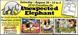 The Unexpected Elephant supports Waldport Food Share, Adventist Clothing Share and South Lincoln Resources.