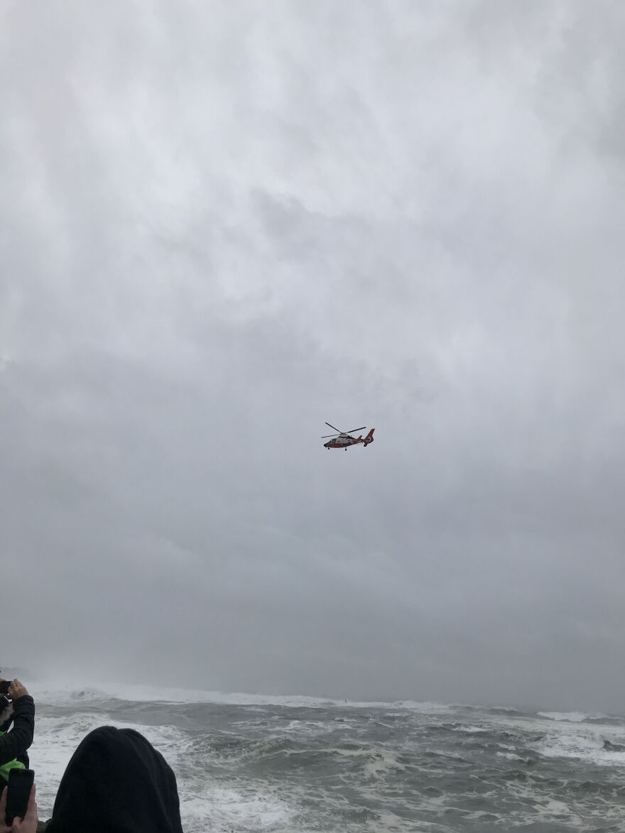 Within ten minutes of the incident, a helicopter from the Coast Guard Air Facility Newport was on the scene. Rescuers figure the chances of survival based on water temperature and other factors including the age of the victim. Water on the Oregon coast is usually below 40 degrees.