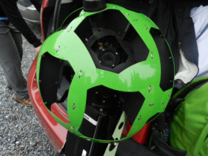 Chandra LeGue: “It's sort of like an external frame backpack, but then it's got a box strapped to it that has batteries... And then it’s got this two-foot pole, basically, with this big camera on top. So it’s a little top-heavy. It doesn’t feel quite stable on your back. And it weighs about 40 pounds.”