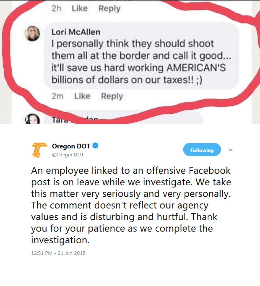 An employee of the Oregon Department of Transportation is being investigated for an offensive Facebook post involving immigrants.